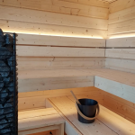 You can choose the exterior colour freely, just like with Hetki Sauna and Hetki Sauna Plus. The exterior door is, depending on your choice, either a wooden door, a glass door or a glass panel door. You can choose either a large or a small window. You can choose either a normal or reflective surface for a large window. The entrance is invitingly illuminated by an outdoor LED light above the door.
